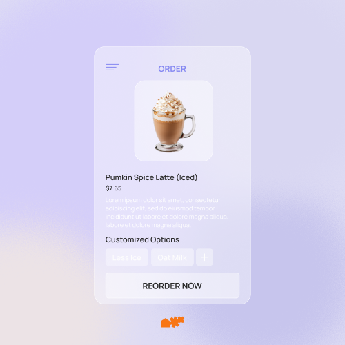 반투명 유리 효과를 활용하여 배경을 흐릿하게 만들고, 밝은 색상과 미묘한 테두리로 입체감을 주는 UI 디자인입니다