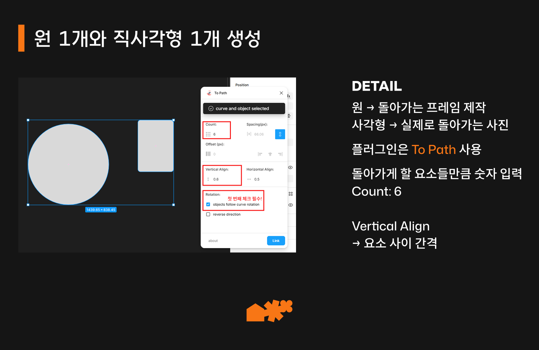 이렇게 Link를 누르면, 원형과 실제 돌아갈 도형이 합쳐져서 나옵니다