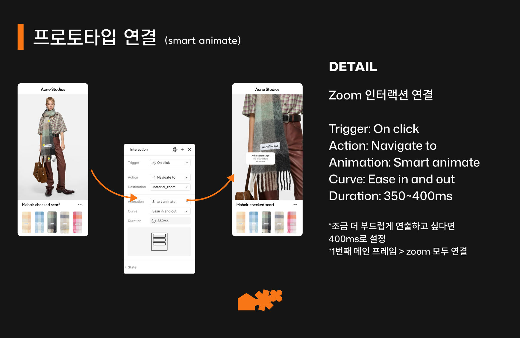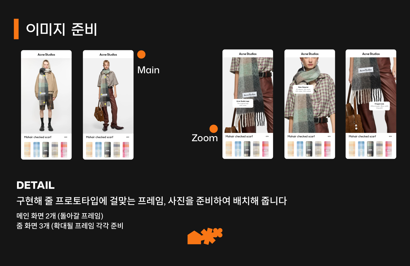 오늘은 상품 상세 페이지에서 클릭하면, 그 부분만 ZOOM 되어서 나타나고 다시 클릭하면 원래대로 돌아가는 모션을 소개해 드릴 텐데요~ 아무래도 e커머스에 재직 중이신 디자이너나 PM 분들이 보시면 조금 더 유용할 것 같습니다